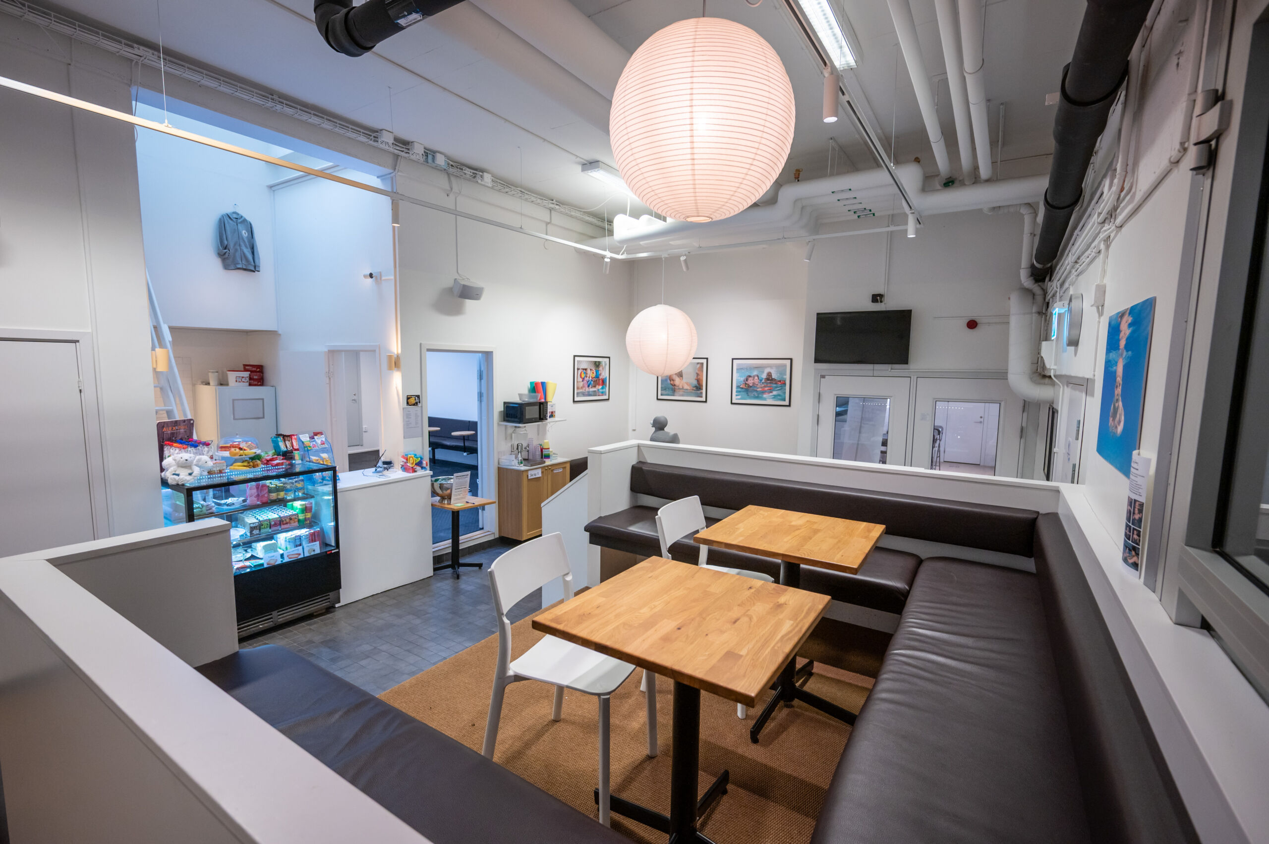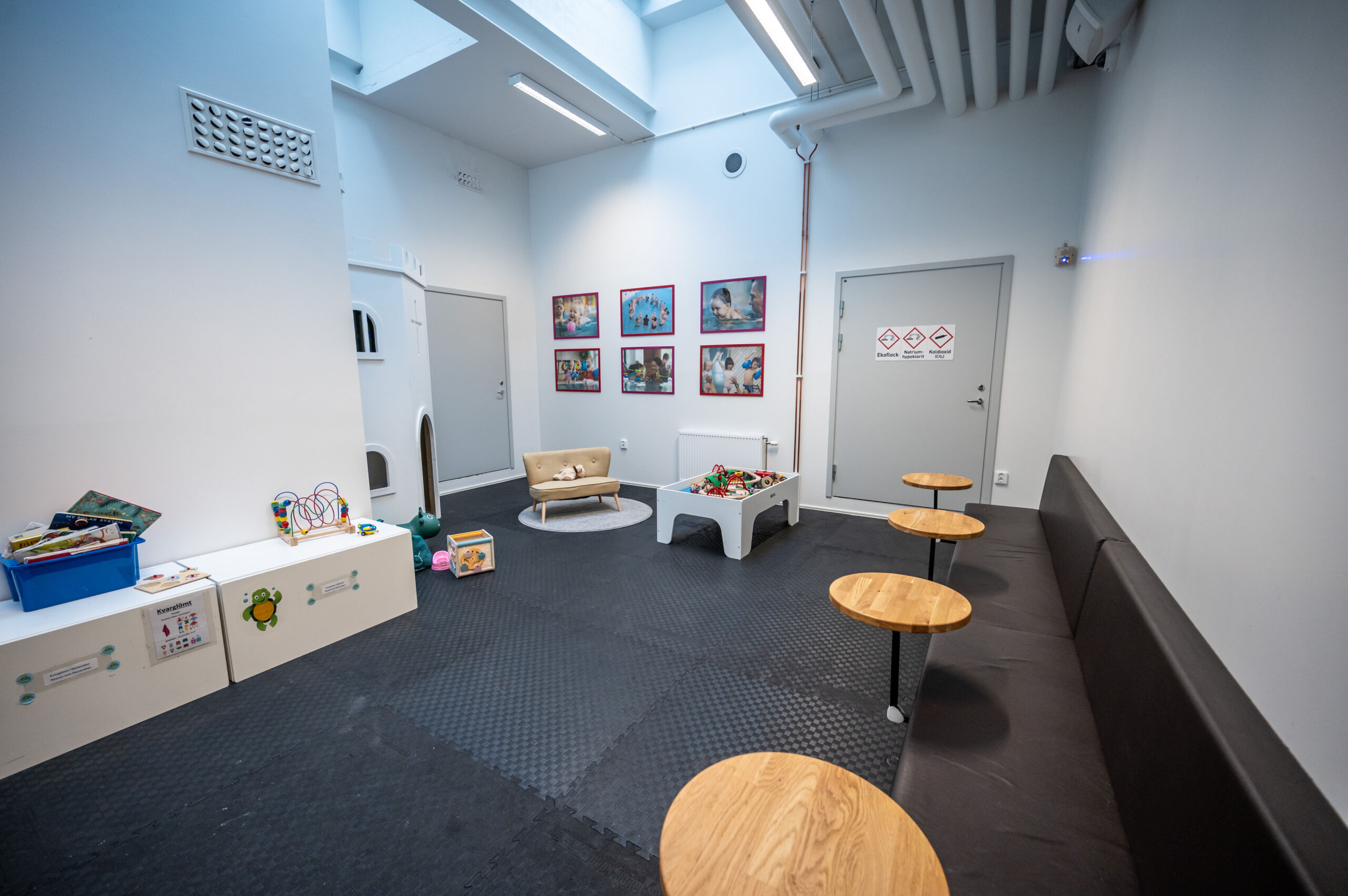 På denna anläggningen har vi en bemannad reception och café. Här hittar du toast, korv, pannkakor och mycket annat gott i både mat- och fikaväg. Vi bjuder på kaffe till de vuxna och barnen kan leka i vårt lekrum. Perfekt att hänga kvar före eller efter badet – träffa nya vänner, fika eller ta det lugnt en stund.