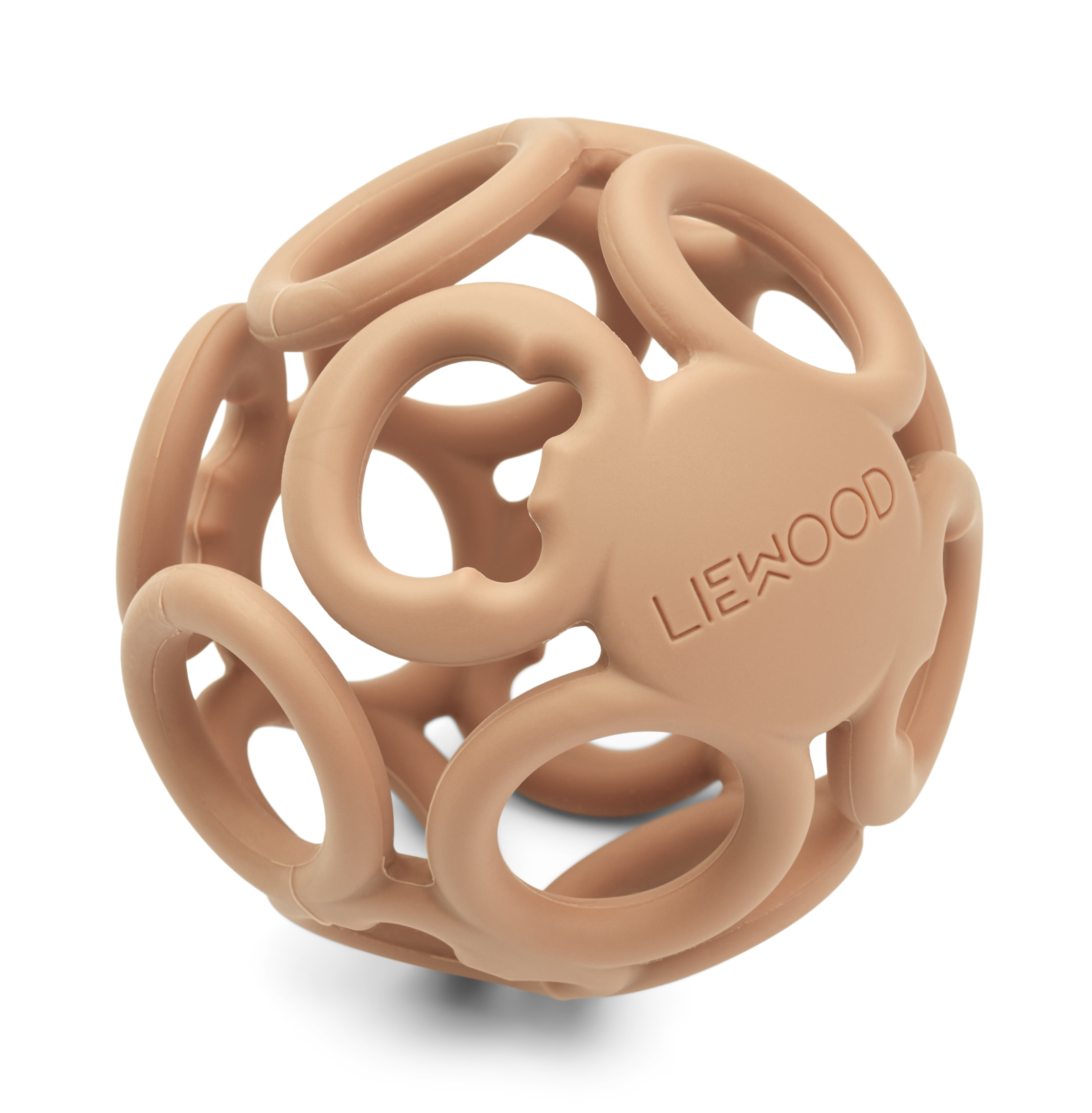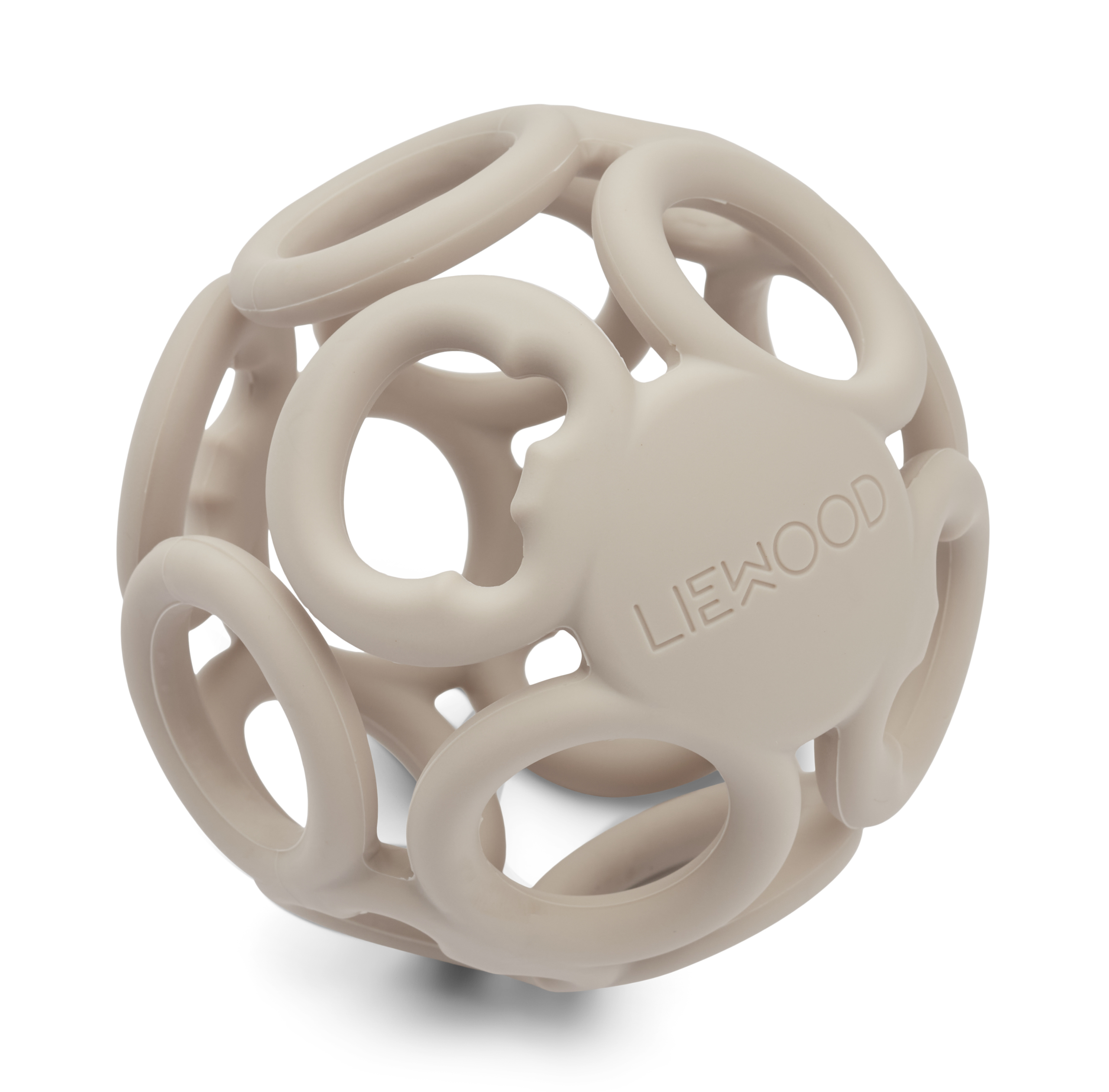 Boll och bitleksak i silikon som är lätt för det lilla barnet att hålla i, och den hjälper när tänderna kliar.